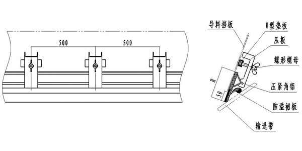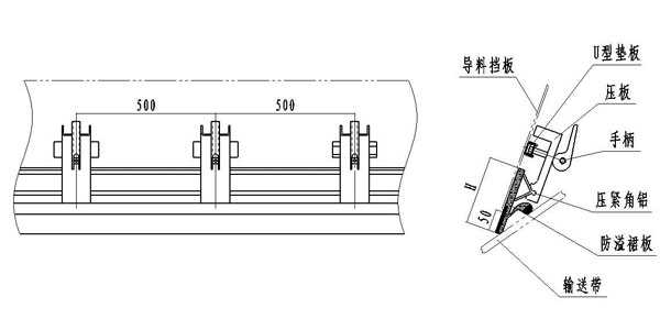 2、密封裙板高度可根據導料槽的實際尺寸適當調整。